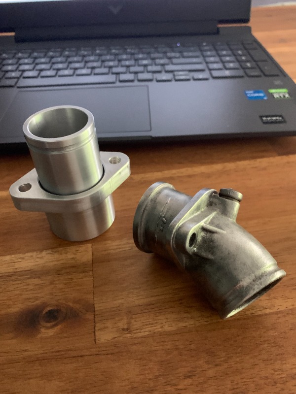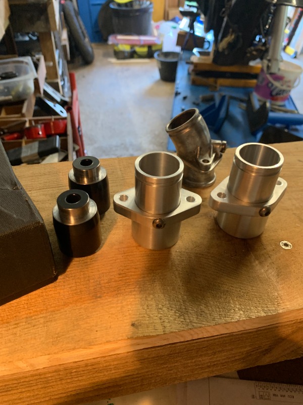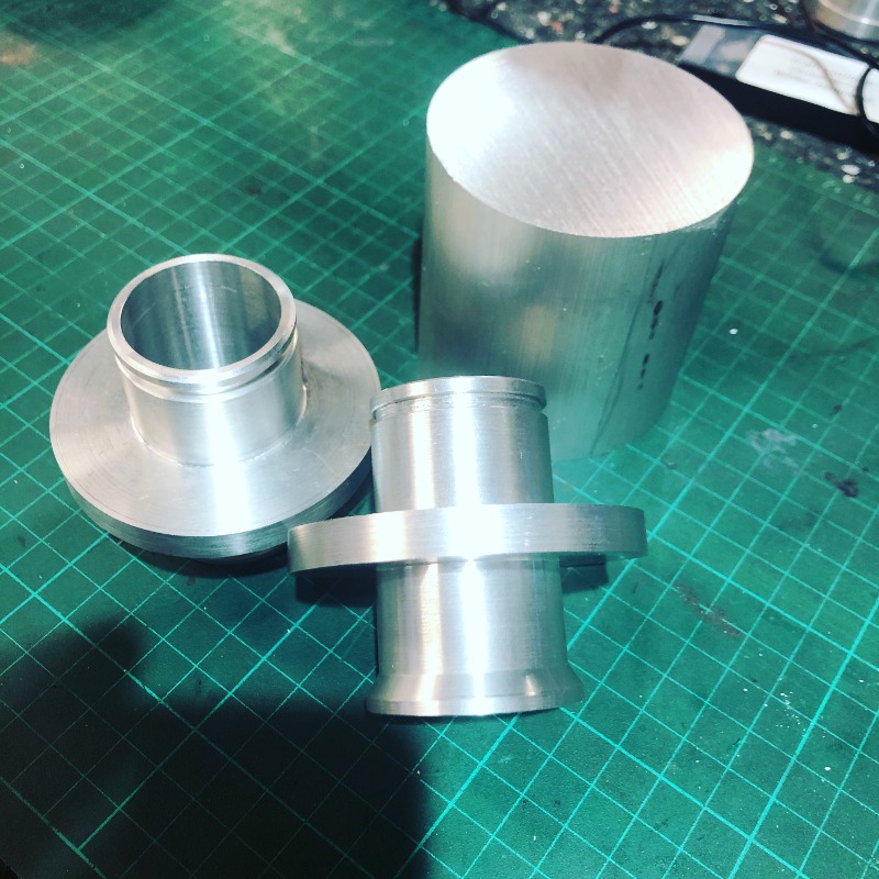 une commande de pipes d'admission droites pour un petit bloc v65. J'en avais déjà fait une paire mais taillées dans la masse d'un gros rond de 70 ou 80... Beaucoup de perte à cause de la section d'ancrage sur le cylindre.