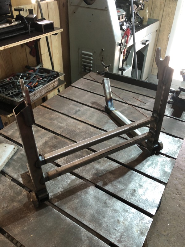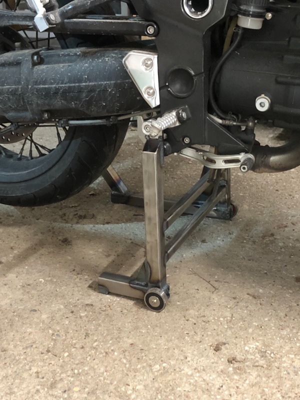 Sinon j'avais bien pensé à une béquille pour roue avant. Pour la vidange ça fait le job mais j'aurai sans doute besoin de démonter les roues un jour et là ça devient acrobatique.