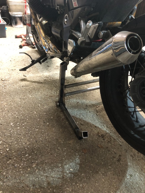 Comme béquille centrale, il te faut trouver un modèle du type "BECKER-TECHNIK" avec sa rallonge (trouvable chez Norauto ou Feu Vert).