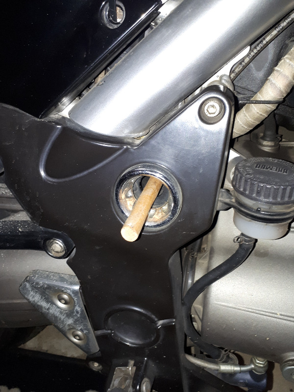 lors de la transformation du G5 en Griso, un bout de ferraille s'est perdu en route : la béquille centrale, bien pratique pour plein de situations et notamment la (les) vidange(s).