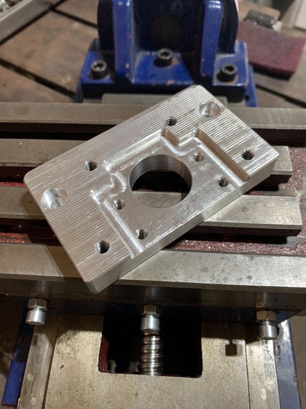 plaque de gauche qui supporte le roulement (côté usinage du filetage)