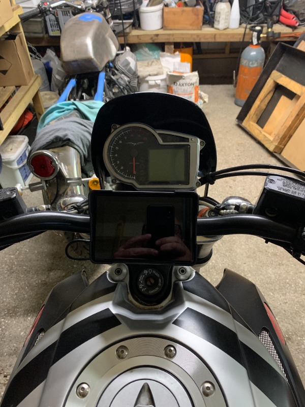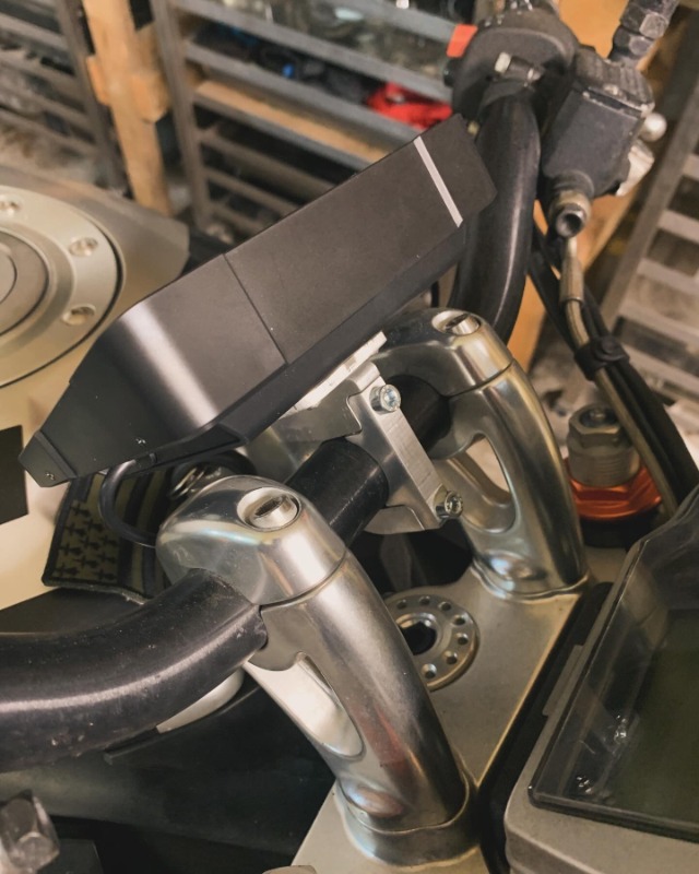 - D'origine il y a un support boule type RAM mais je voulais au moins que ça reste sur la moto sans pour autant que ça me fasse un 3ième retro et qu'on ne puisse pas me le braquer en 2.5 secondes. Donc refaire la pièce support et l'adapter pour un serrage sur la partie centrale du guidon. Mais forcément une fois démonté c'est une pièce moulée avec un design à la con...