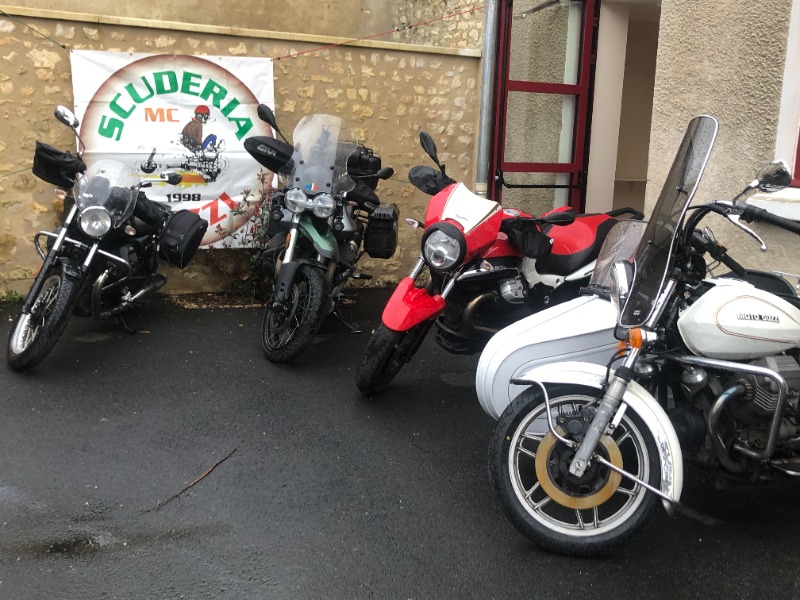 - MG T5 de 84, MG Griso 12SE de 2012, V7 850 Centenario, V65 et Triumph Bonneville de 2002.