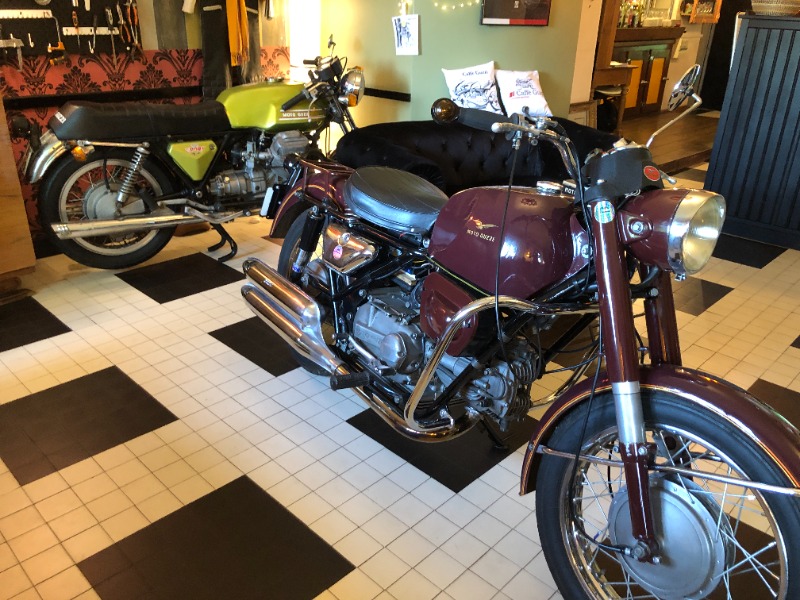 Nous avons fini par aller voir ailleurs, fatigués d'écouter les excuses de ce plaisantin. Pour ceux qui seraient intéressés par l'endroit, il y a quelques articles à vendre et même quelques Guzzi en exposition. Il ne manque qu'une once de convivialité.