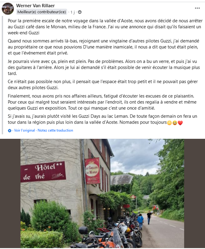 Si j'avais su, j'aurais plutôt visité les journées Guzzi au lac Léman. Quoi qu'il en soit, demain nous ferons un tour dans la région, puis plus loin dans la vallée d'Aoste. Nomades pour toujours🌞😃❤️ "