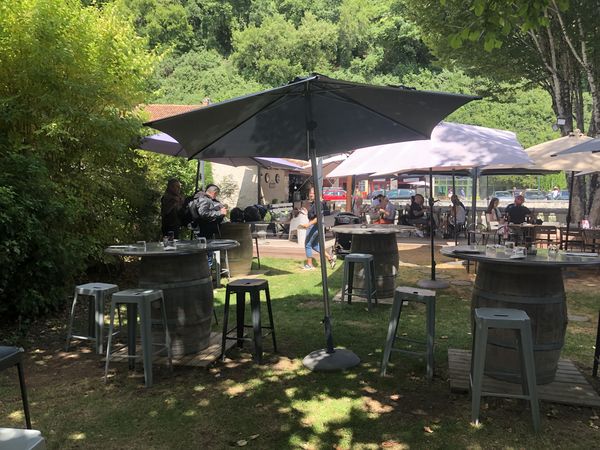 Pause bouffe sur le pouce normalement et puis le zorg nous envoie dans un truc planqué pas très engageant mais une fois à l'intérieur et passé côté rivière un bon délire. Brantôme en Périgord.